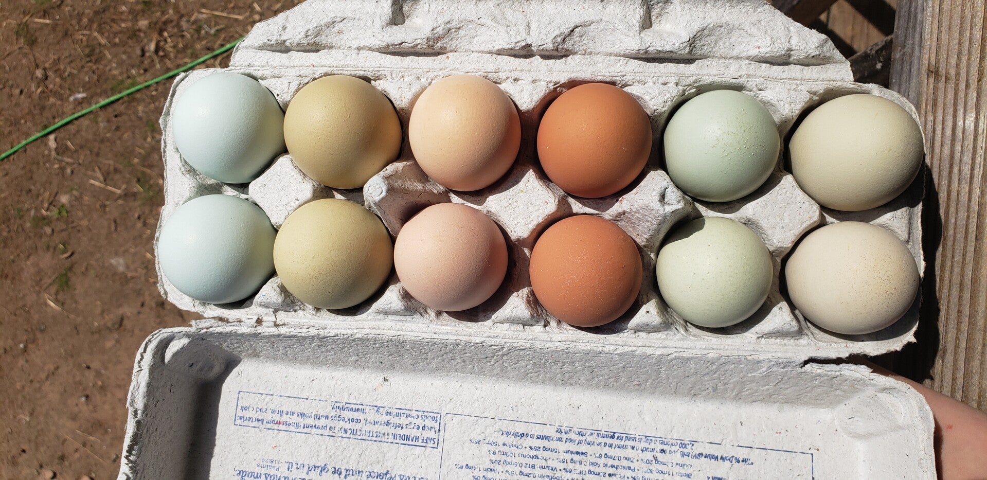 Our Easter/olive egger flock consists of Dominique, Ermine Ameraucana, wyandotte, black jersey giant, olive egger, splash leghorn, black copper maran, and fibrocana hens.